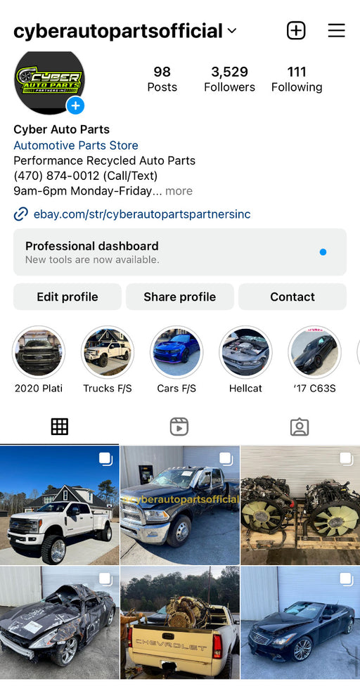 CyberAutoPartsLow stockDONOR VEHICLE: FITS: IMPORTANT NOTES: CONTACT US FOR ANY QUESTIONS. WE RESPOND QUICK! Located in Douglasville, Georgia Follow us on Instagr...
