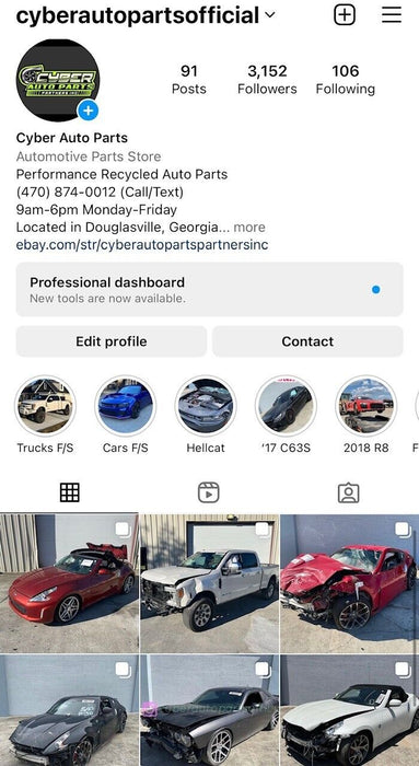 Located in Douglasville, GeorgiaFollow us on Instagram @cyberautopartsofficialFacebook @Cyber Auto Parts Incfour7zero 8seven4 00onetwo for any inquiries